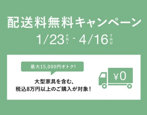 Francfrancアプリの新規ご入会でもらえる【5%OFFクーポン】や、大型家具・ラグなど合計8万円以上のご購入で【配送料が無料】キャンペーンも併用可能です!