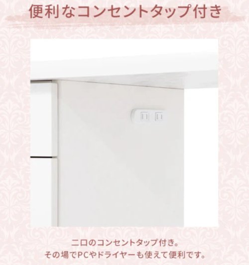 チェストの内側に便利な2口コンセントタップを備えており、ドライヤーやヘアアイロンもスムーズに使用できます。