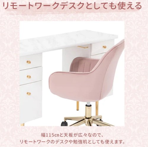 大型ドレッサーとして使うのはもちろん、十分な広さを生かしてリモートワークのデスクや勉強机として活用することも可能なサイズです。