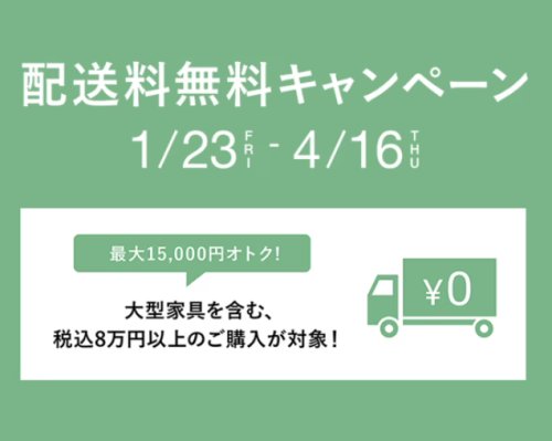 今なら家具を含めた¥80,000(税込)以上で配送料無料キャンペーンを開催中です!