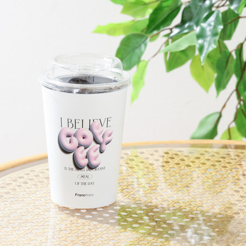 テイクアウトしたドリンクやコンビニコーヒーなどを、カップごと入れられる真空二重構造のステンレスカップです。