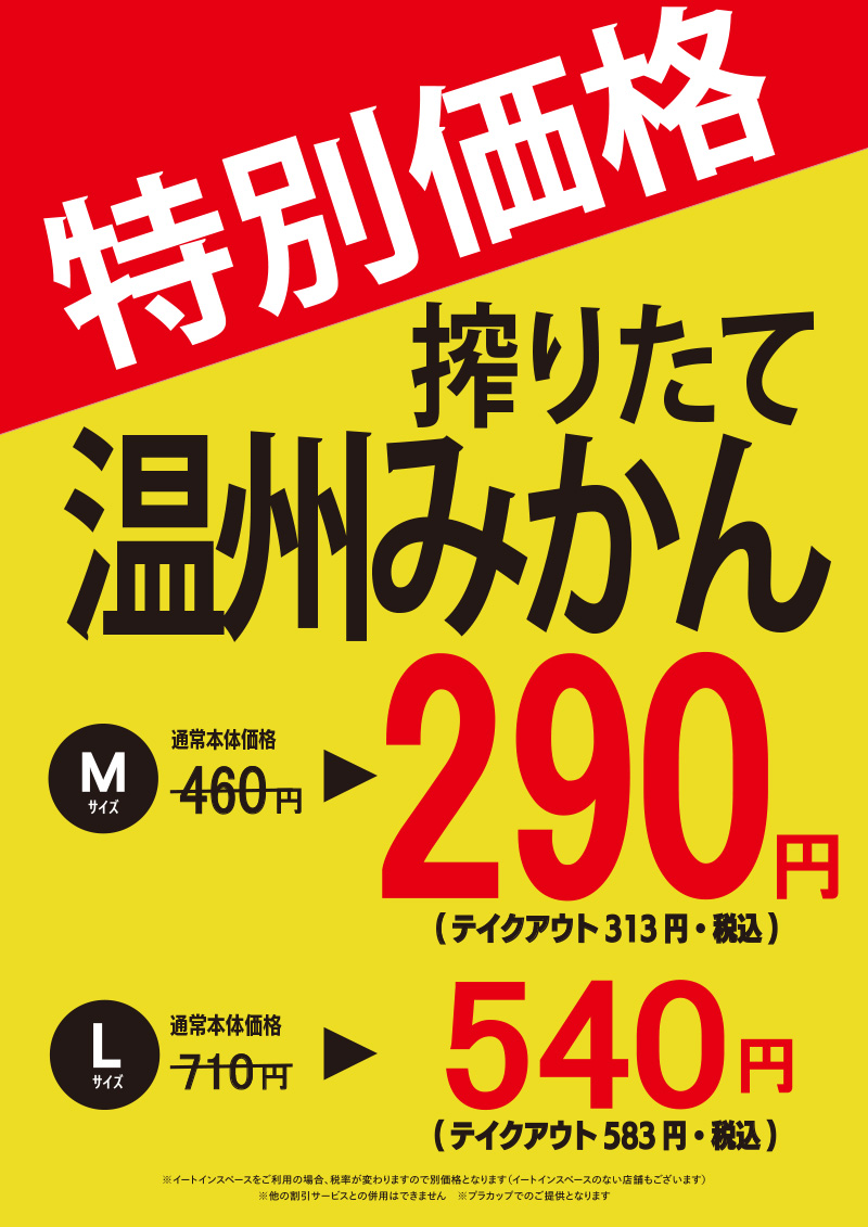 季節限定「搾りたて温州みかん」セール実施中