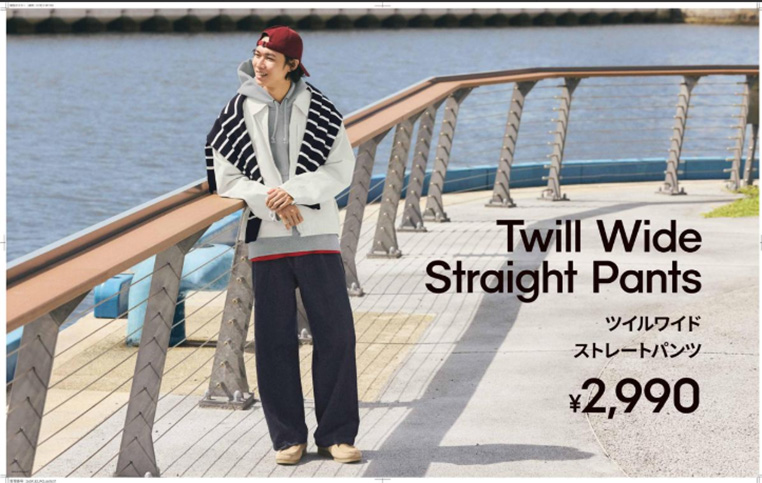コットンツイル素材で、しなやかな風合いが特徴です。センタープレスなのでクリーンに着用でき、トレンドのストレートシルエットがかなうアイテムです。