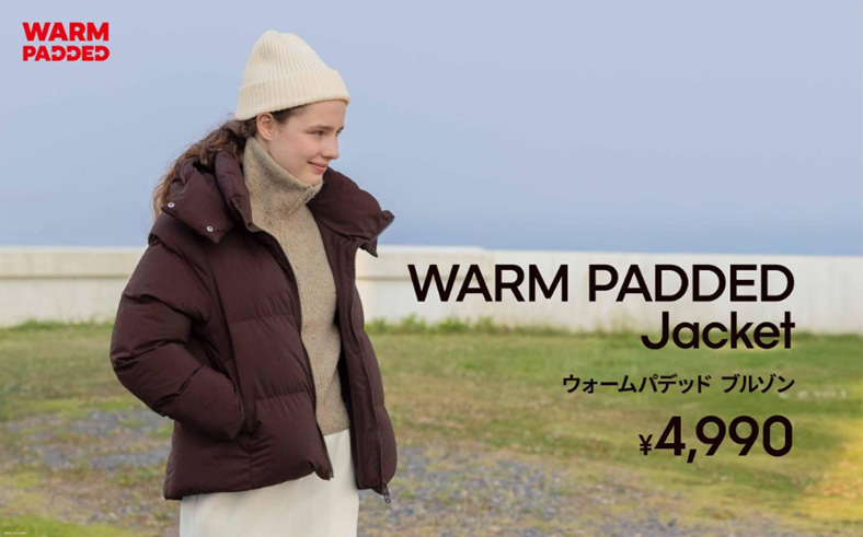 ウォームパデッドとは中空糸中わたを使用した機能素材アイテムです。身頃が大きく袖幅が広いので、腕が通しやすく中に着る服を選ばないアイテムなっています。