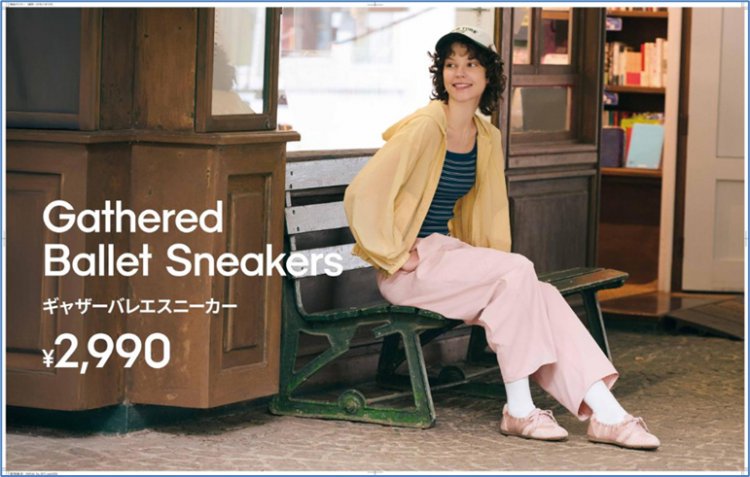 はき口がギャザーになっている、バレエシューズようなデザインが特徴。足底は屈曲性があり、スニーカー特有の快適なはき心地を感じていただけるアイテムです。