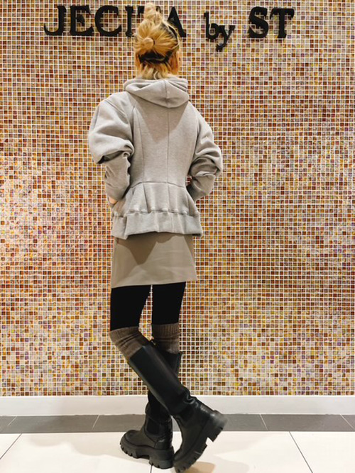 ボリューミーなパフ袖と後ろのペプラムがおしゃれなパーカー✨