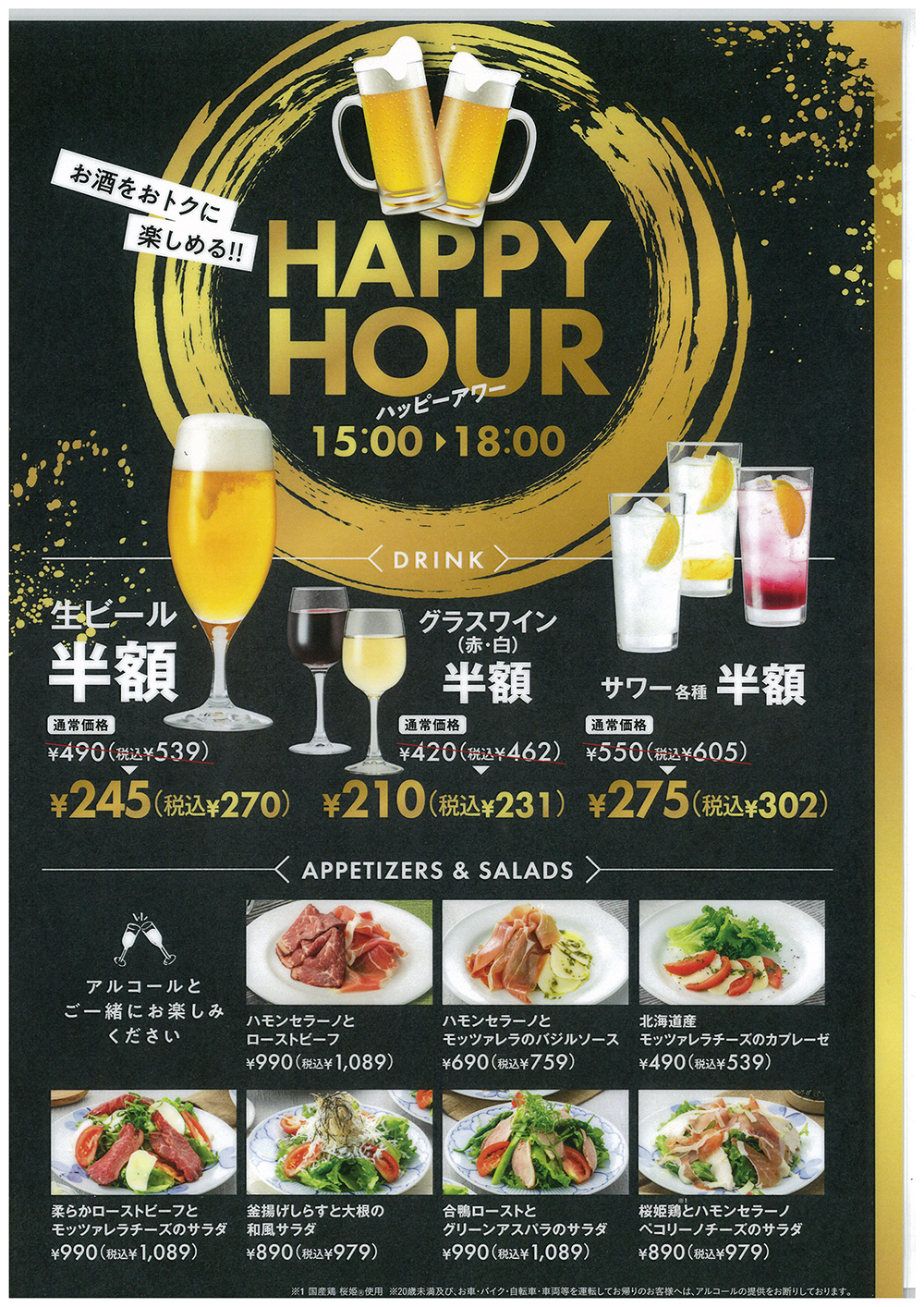 - 2025.5.11upハッピーアワー 15時〜18時限定!!