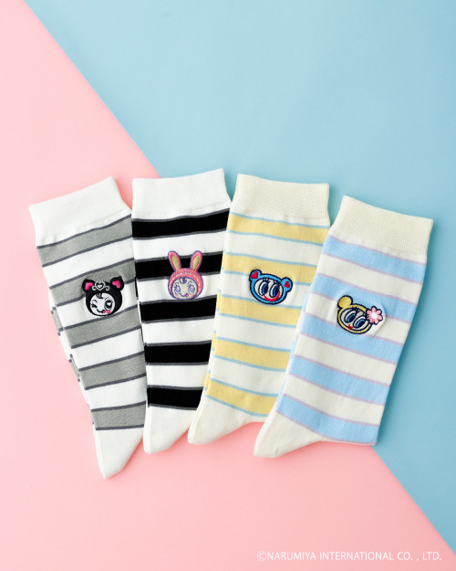 ●ナルミヤキャラクターズボーダー刺繍ミディ丈ソックス(全4種)