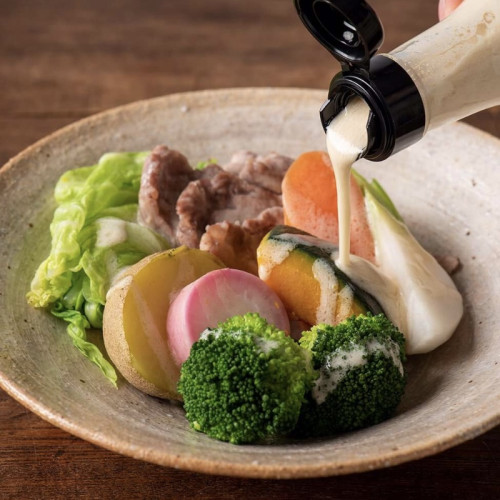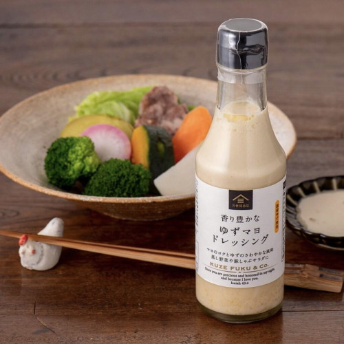 マヨネーズのコクと国産柚子の上品で爽やかな香りが広がります。マイルドな甘みで飽きのこない味わい、蒸し野菜や豚しゃぶサラダにオススメ。