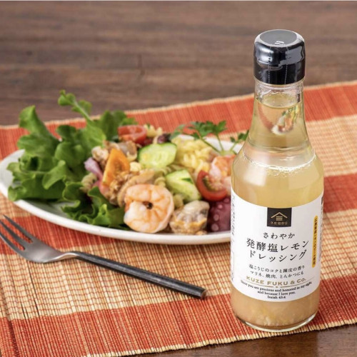 広島産レモンのピールを使った清涼感のある柑橘の香りと塩麹のコクが素材の味を引き立てます。サラダはもちろんマリネ、焼肉、とんかつにも最適です!