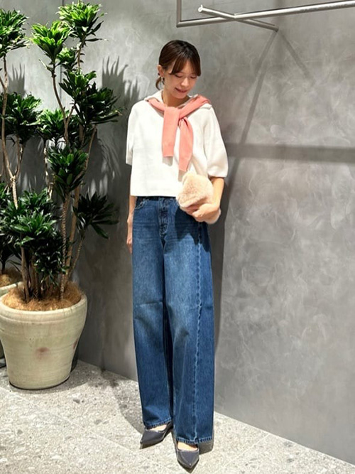 ボトムには、今年らしいカーヴィデニムをチョイス。