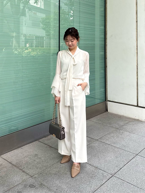 ボトムは、毎年大人気のややワイドパンツを合わせました。程良い太さのパンツは、トップスを選ばず合わせやすいのが嬉しいポイント❣