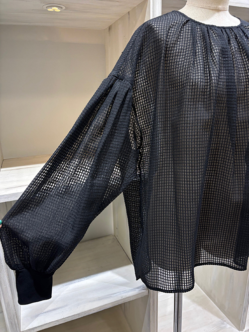 透け感のある身頃は、軽やかにそして上品見えするデザインの引き立て役です。
