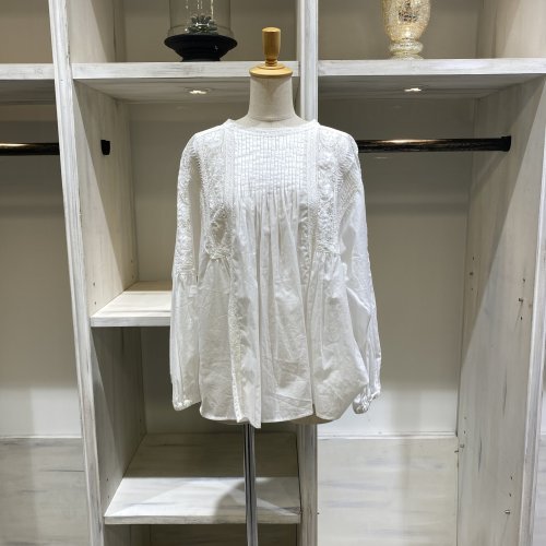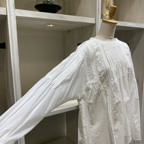 レースがたっぷりとあしらわれた身頃。コットンのシアー感とマッチして綺麗で女性らしい印象の1着に仕上げました。