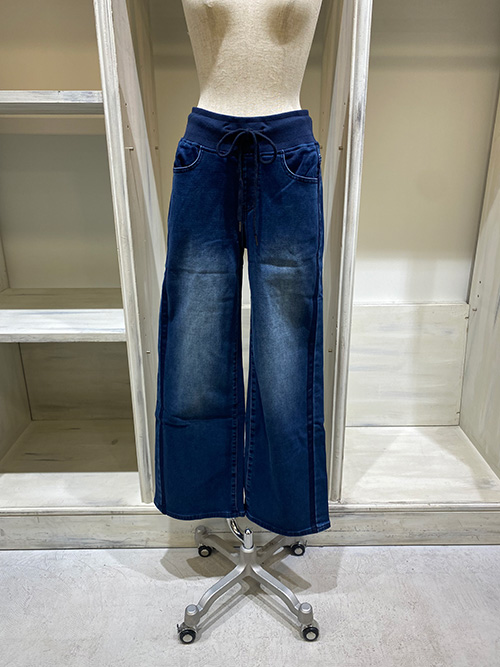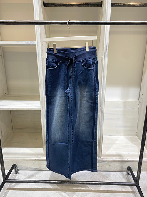 スウェット感覚で着用でき、脚長効果があり落ち感が綺麗です◎ 総ゴムでストレッチもきいていて、デニムを穿かない方にもオススメできる1着です。