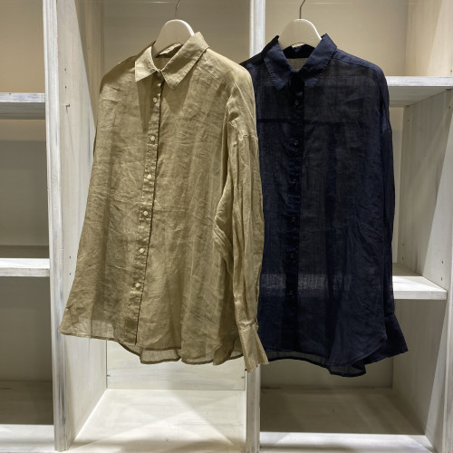 繊細な生地感がポイントで、麻100%使用したシアーシャツ。程よくゆとりのあるシルエット。