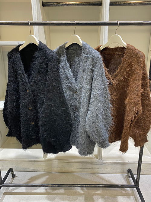 LOURDES(ルルド)より毛足長めのジャギーカーディガンが登場いたしました!ファーのような毛足長めの起毛加工が施されています。しっかりとしたボリュームのあるデザインで秋口にはジャケット代わりとしても◎ロゴロンTなどと合わせて綺麗めカジュアルとしても、ロングスカートなどを合わせて綺麗めに纏めることも出来るので万能な1着です!