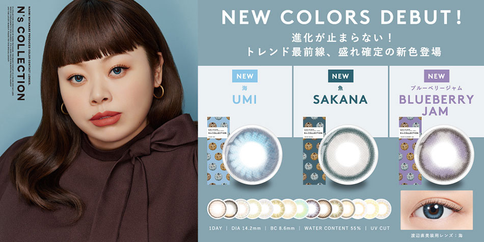 渡辺直美さんプロデュース、「大きく見せる」「盛る」だけではなく、メイクと合わせることでより魅力的な印象をつくるメイクを引き立たせるカラコン『N’s Collection (エヌズコレクション)』 をおすすめ!しっかりメイクから、日常的なナチュラルメイクに合うデザインまで、さまざまなメイクを引き立てるレンズです!