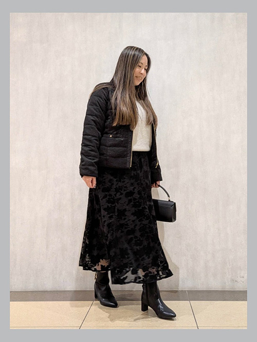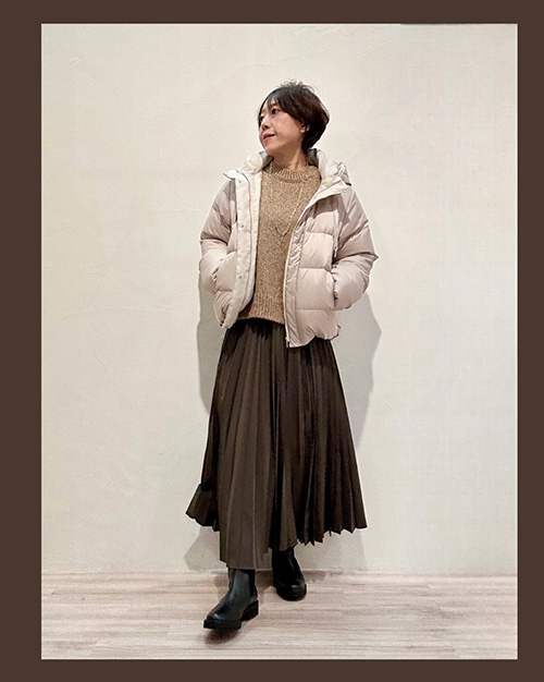 ショート丈なのでスカート、ワンピースとのスタイリングもすっきりと着こなしていただけます。