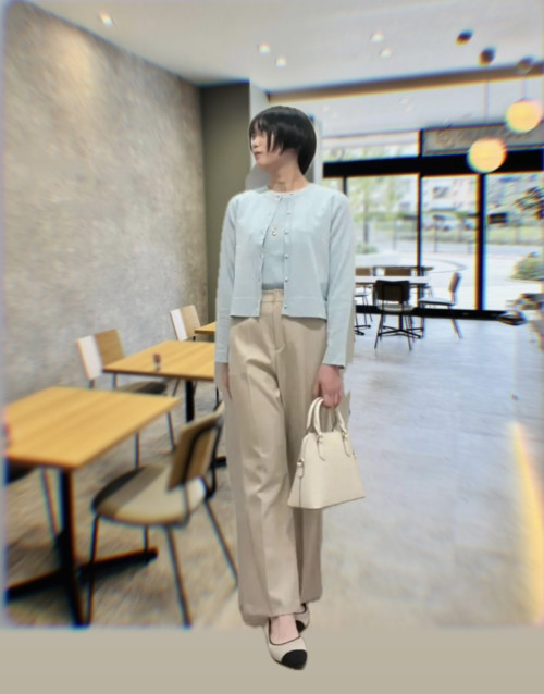 カーディガンやスカートと合わせたフェミニンな着こなしもおすすめです✨