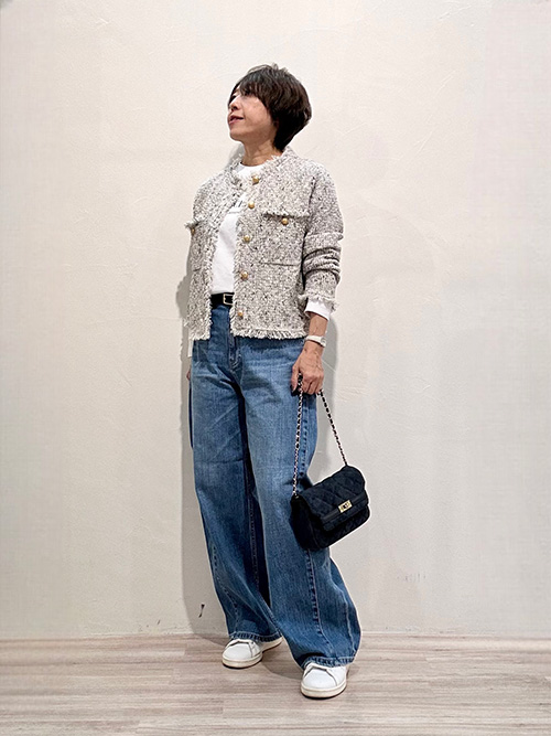 ツィード調ニットのジャケットが主役のデニムコーデ♪