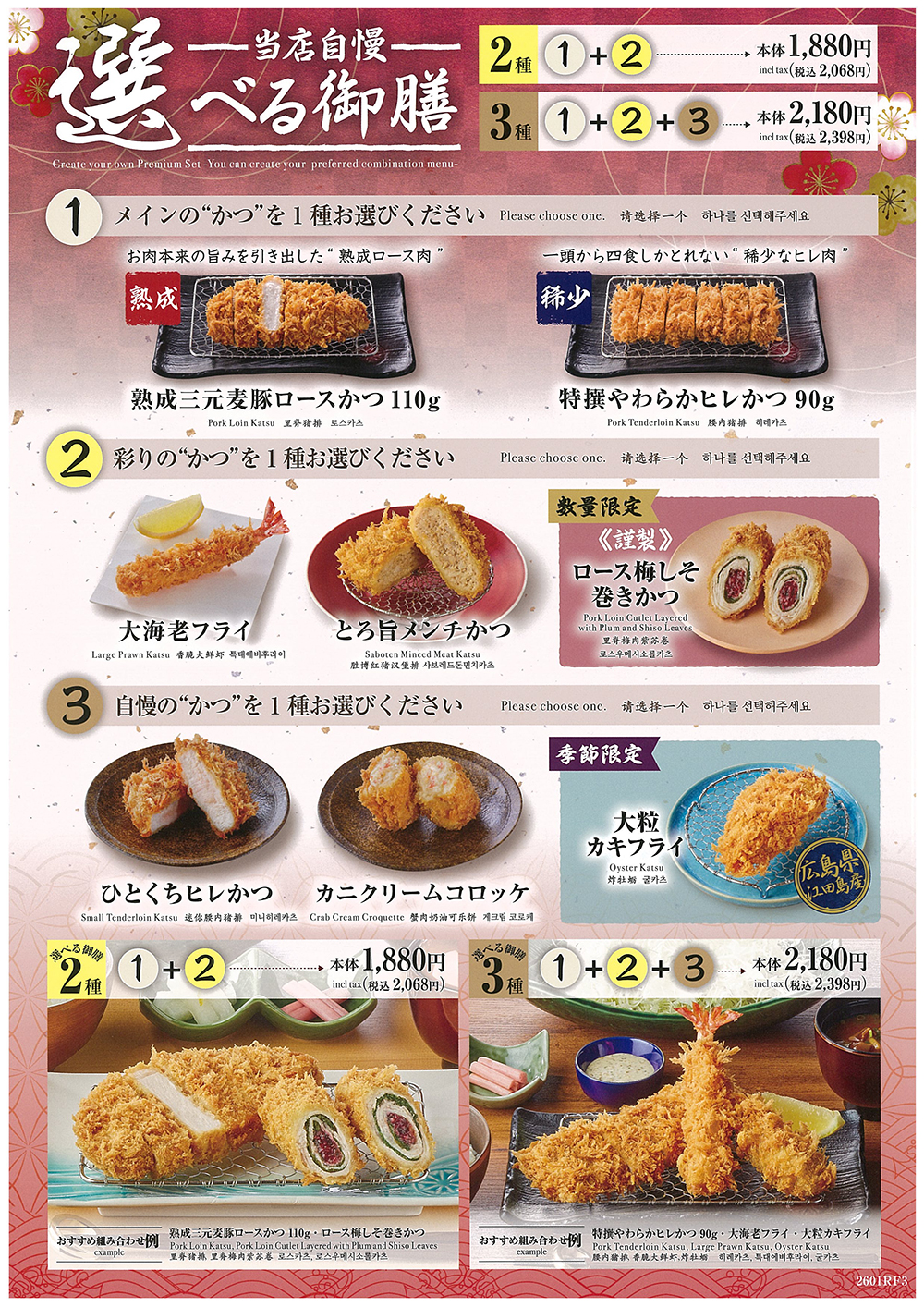 創業40余年。全国に店舗を展開するとんかつ専門店。さぼてんブランドポーク『sabo RED』をはじめ、期間限定商品など、お料理をお楽しみいただけます。すぐに、お持ち帰り頂ける、お弁当、かつサンドもご用意して皆様のご来店をお待ちしております。
