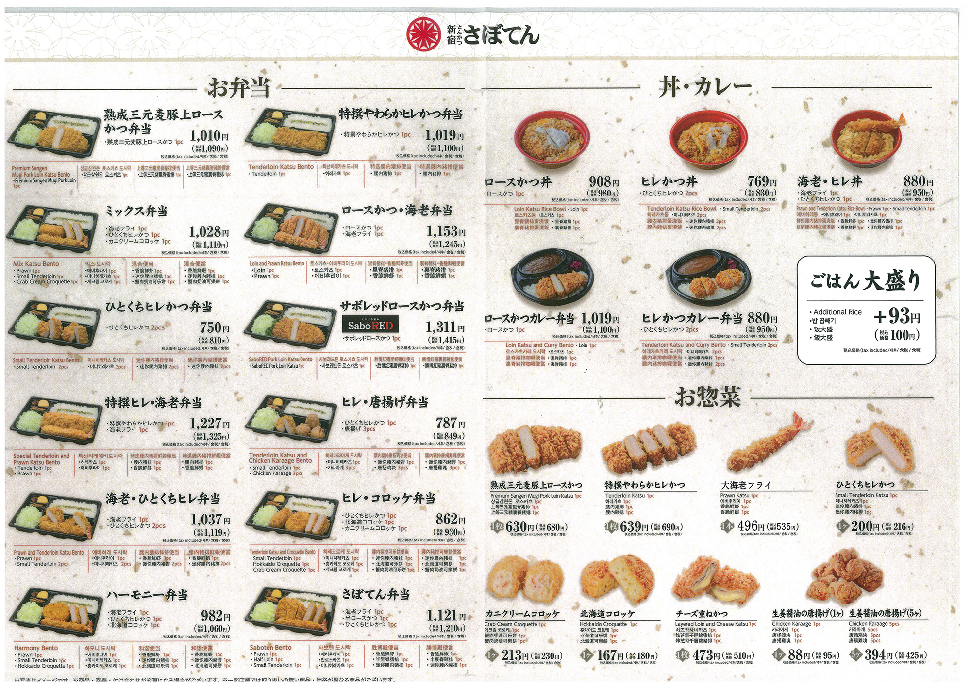 創業40余年。全国に店舗を展開するとんかつ専門店。さぼてんブランドポーク『sabo RED』をはじめ、期間限定商品など、お料理をお楽しみいただけます。すぐに、お持ち帰り頂ける、お弁当、かつサンドもご用意して皆様のご来店をお待ちしております。