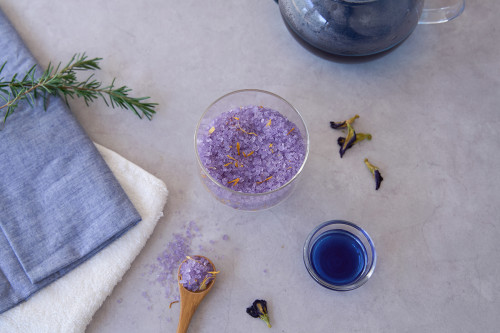 ~神秘的な青いハーブ「バタフライピー」を楽しむひととき~バタフライピーを使った、香りも色も楽しめるバスソルト作りを行います。