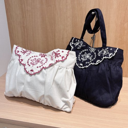 ローズ柄のスカラップ刺しゅうが華やかな印象を与えるバッグ🌹