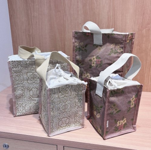 ジャガード織で描かれた柄デザインが上品で華やかな風合いを演出する収納バッグ👜