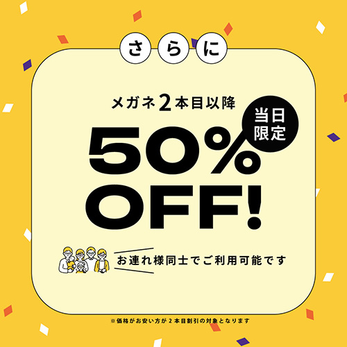 ②フレーム・7,700円以上のオプションレンズ半額保証