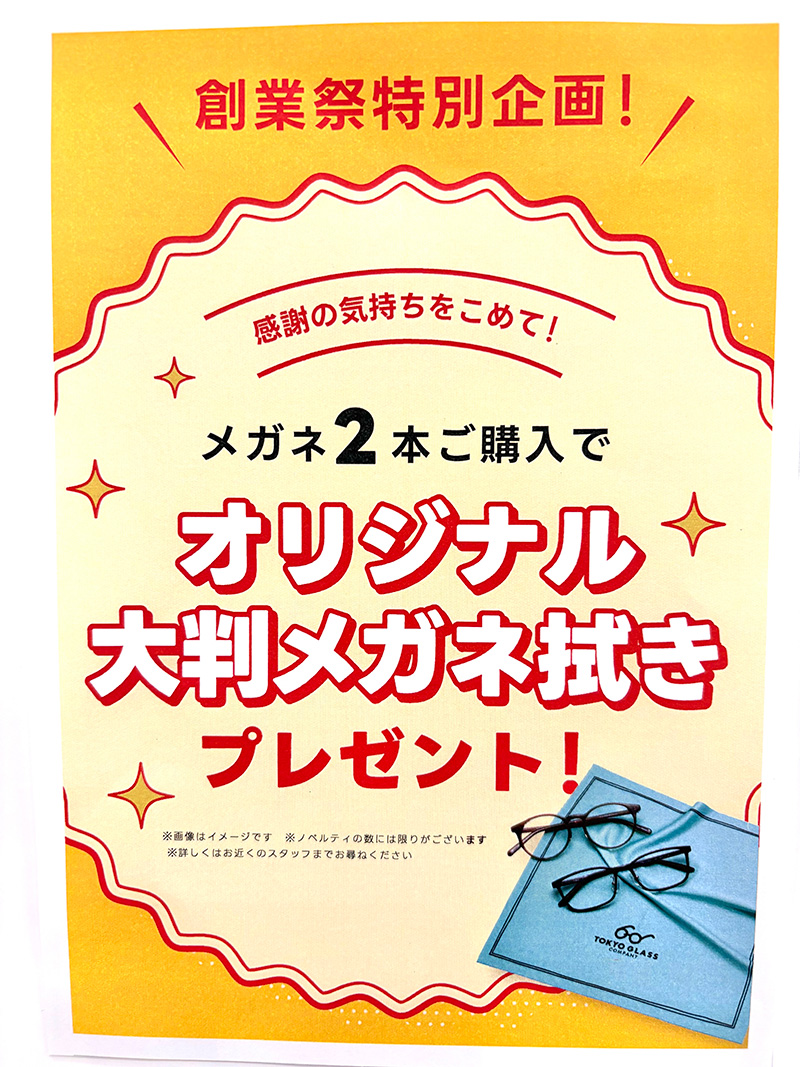 メガネ2本購入でオリジナル大判メガネ拭きプレゼントしちゃいます!