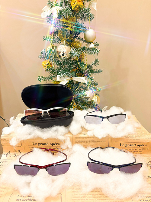 雪の反射を防ぐサングラスや、1本で手元も遠くも見える遠近両用レンズ、疲れ目防止のブルーライトカットレンズなどお好きな1本にカスタマイズ可❗️