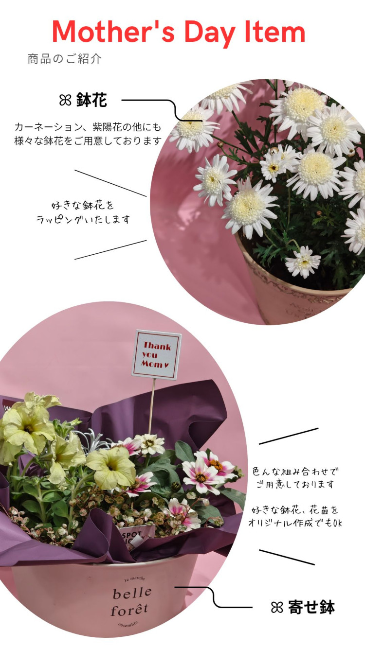 母の日ギフト商品たくさんあります。スタッフ一同お待ちしております。