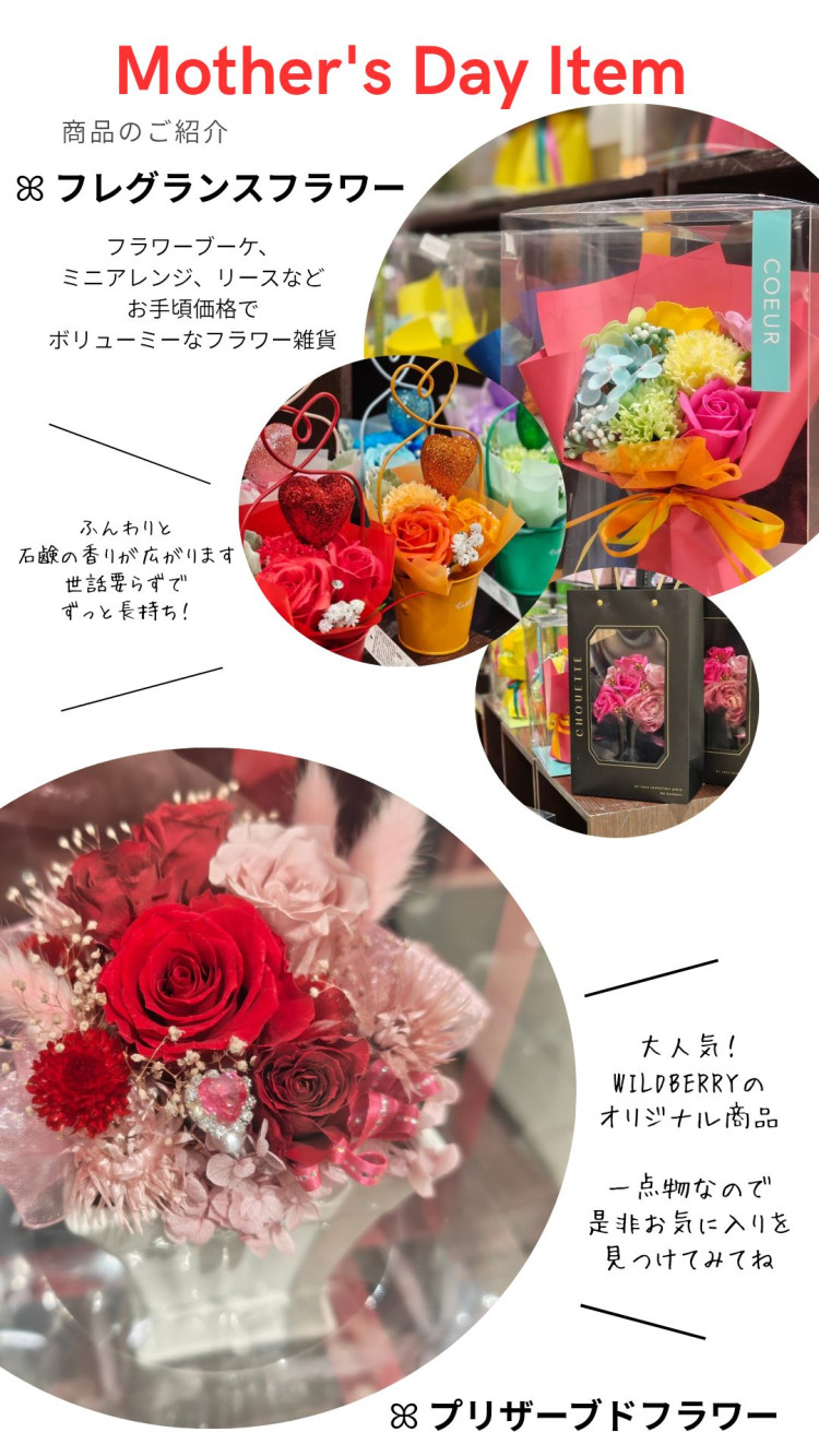 WILD BERRYではたくさんのギフト商品をご用意しております。母の日のプレゼントはぜひWILD BERRYにお任せください!
